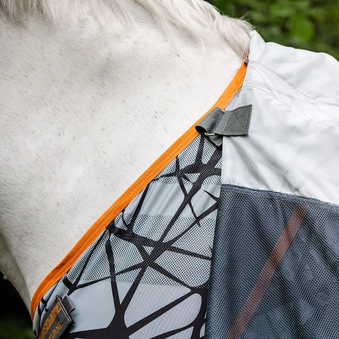 This well made fly sheet has a pattern with a purpose – the unique markings on this fly sheet deters and confuses flies from landing on the horse.