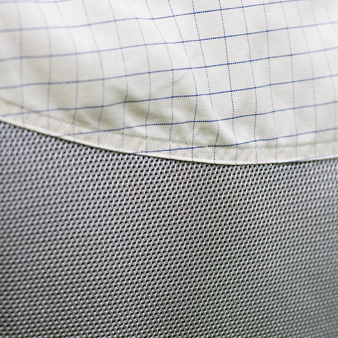 Color: Ivory/Navy check on top, Grey mesh sides, Atlantic Blue trim