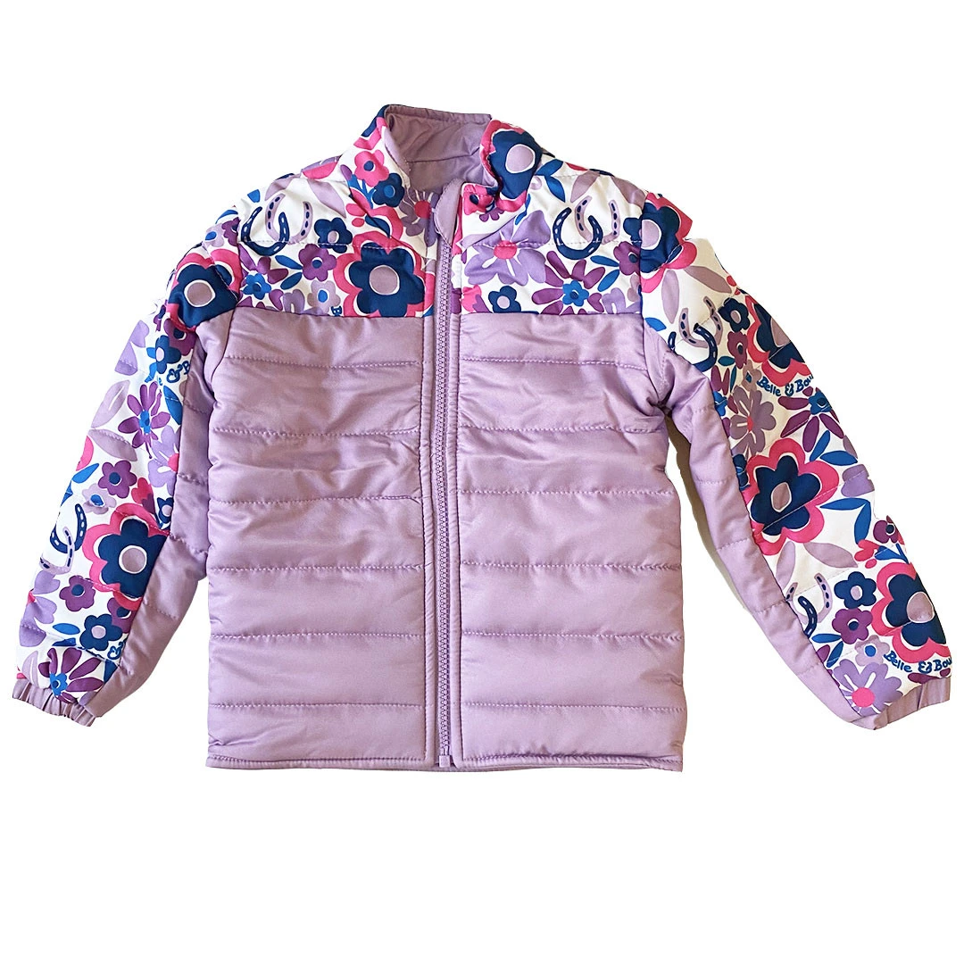 The Puffer Jacket will keep your pony-loving kid warm on the coldest days at the barn! This adorable jacket is reversable so you can choose to wear the Lavender with the Flower Power print or the solid Lavender.