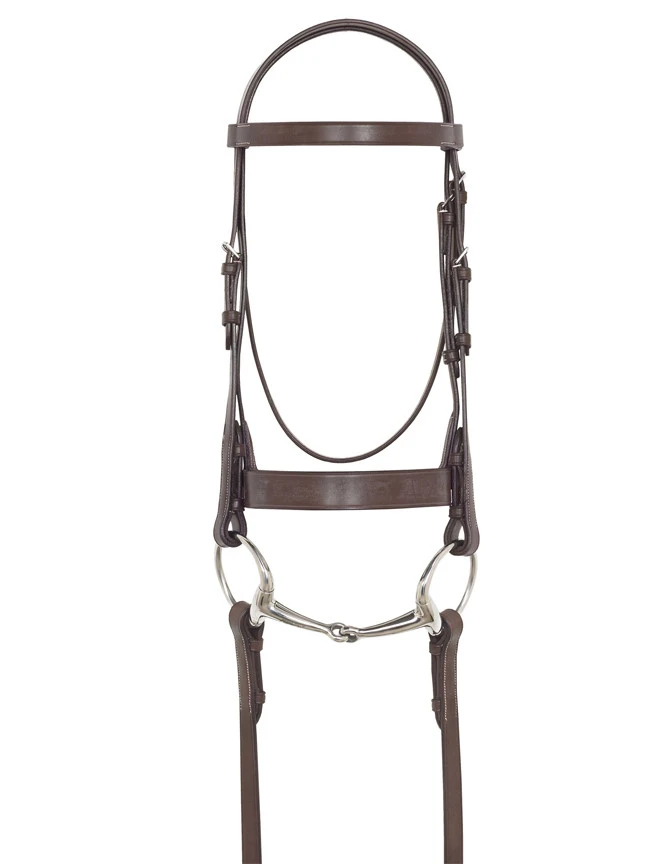 Now there’s a traditional hunt bridle for ponies and cobs! This beautiful Bobby’s English Tack hunt bridle is made with fine leather and superb craftsmanship. It has a flat nose band and brow band and comes with laced reins.