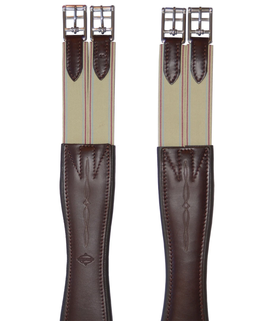 The overlay girths are nylon lined from end-to-end and are outfitted with double elastic on both ends and rounded stainless buckles.