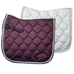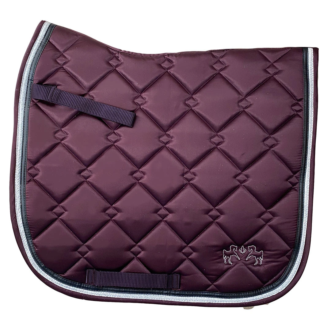 The satin finish and the sparkling and matte trims make this a very classy pad. The Plum pad has an embroidered Equine Couture logo on the left side. The CoolMax® lining provides moisture management to keep sweat and excessive bacteria under control. The pad includes velcro billet and girth straps.