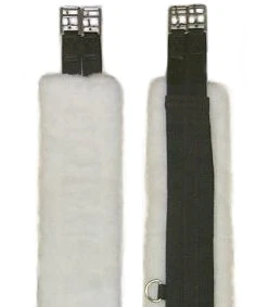This washable cloth girth is lined with thick, luxurious fleece for extra comfort. It has stainless steel roller buckles, a dee ring, and double elastic at both ends.