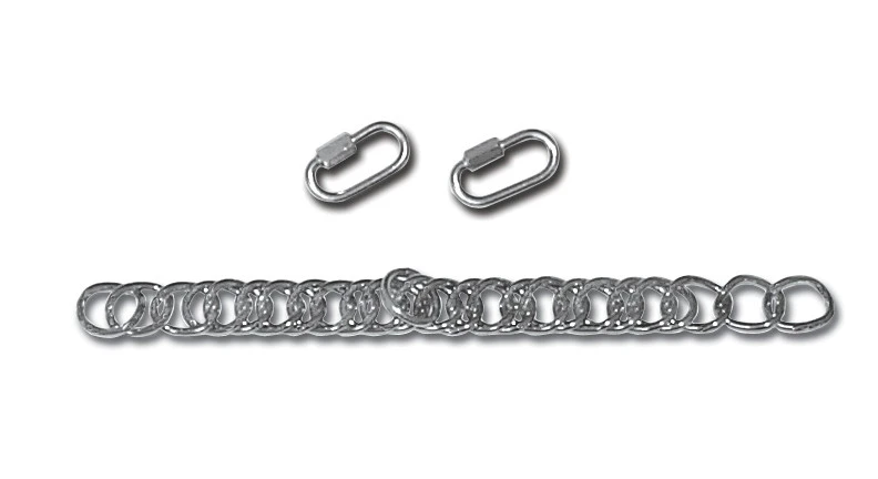 This Curb Kit contains a stainless steel heavy English double link curb chain and one pair of stainless steel quick links. Quick links attach through the holes behind the bridle hooks.