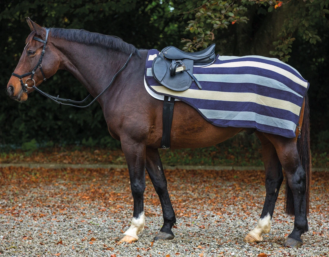 This quarter sheet is cut to go under the flaps of the saddle allowing the rider’s leg to work effectively. The front closes with velcro to allow easy on and off and a tail cord helps keep it in place