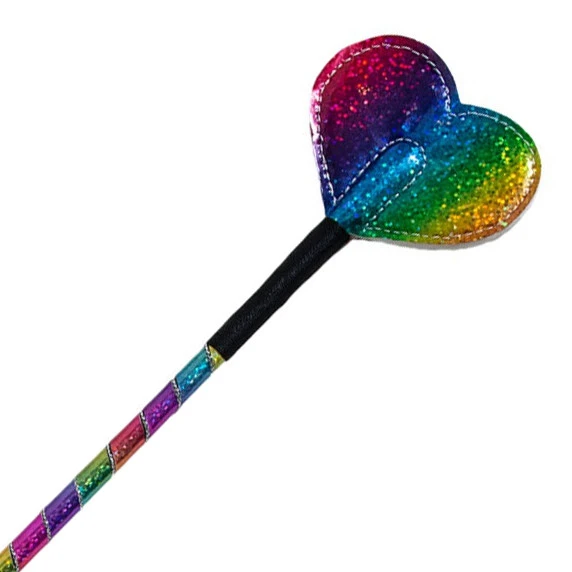 Show how much you love your pony with this fun, rainbow-colored glitter bat with a big heart on the end. The heart is rainbow-colored and has glitter too. This well made bat comes from Snowbee, manufacturers of fine bats and whips.