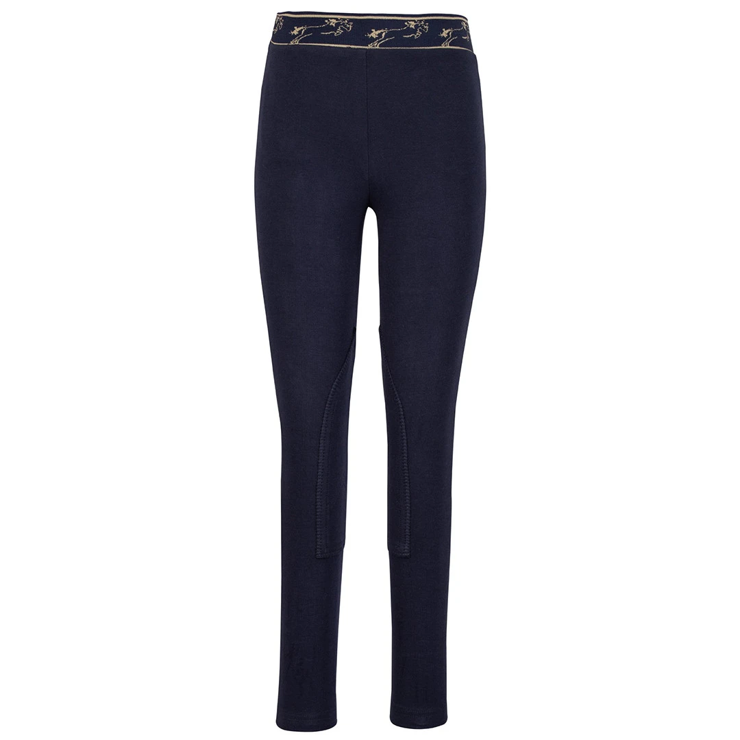 TuffRider light weight shcoolers are great when you need to keep cool on summer days or need a cozy liner on cold winter days. This all-purpose, super soft riding tight features a frolicking horse design waistband in matching colors.