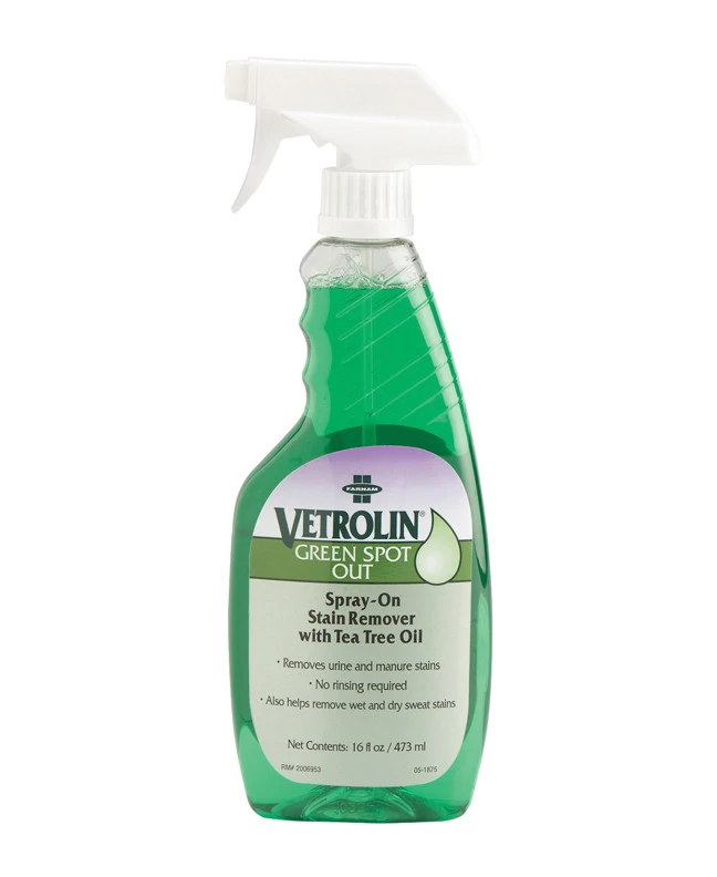 A spray-on stain remover with tea tree oil. Cleans up manure and urine stains on the spot.